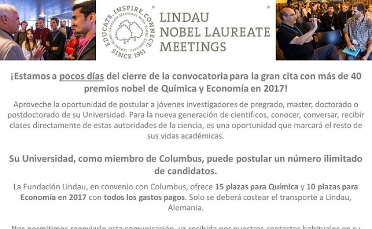 Columbus y Lindau Nobel Laureate Meetings promueven la participación de jóvenes de sus universidades miembros en los “Encuentros de Lindau con los Premios Nobel” que se realizan en Alemania.